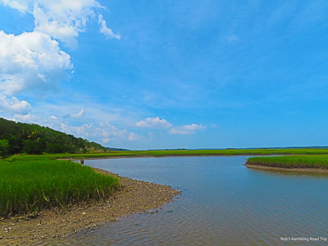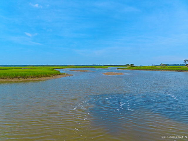 I drove out to Cedar Point Preserve today. There were about twelve empty boat trailers at the boat launch. A combination of fishing and recreational boats get launched from the location. The only boat I saw was a personal watercraft (i.e. a jet ski). Hiking wasn’t a real option because of the heat and the sights were rather static. There weren’t any birds around and once the boat motored away there weren’t any people to watch either. The wind along the open marsh area leading to the sea was just strong enough to keep conditions tolerable as long as I remained in the shade. I hung around looking for something interesting for about half an hour.