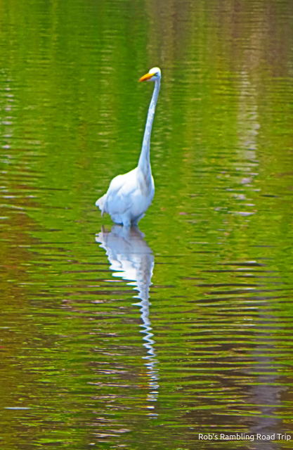 Traffic on the roads today was heavy. I was out looking for places to enjoy nature without having to venture too far from the air conditioned comfort of my car. It wasn’t a very successful outing. I managed to watch one Great Egret forage for food for a few minutes and a bunch of Canadian Geese peck around. The geese at my RV park are easier to watch and more entertaining in my opinion.