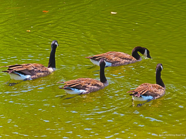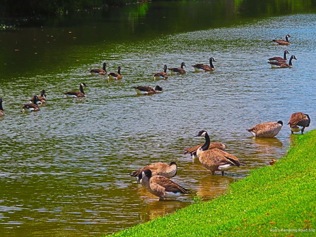 My whole plan for the day got diverted by pushing the wrong button. I ended up staying home and working on chores inside my RV home most of the day. After I finally got cleaned up and dressed for outside activity, I took my daily walk around the RV park. The geese were doing fine in the retention pond and along the bank when I walked by. A couple of minutes later I heard many squawking geese behind me. A dog from a near by RV had gotten loose. It didn’t appreciate the presence of the geese and decided to charge and bark. The noisy racket was followed shortly by an even noisier guy yelling at the dog to obey. Talk about disturbing the peace.