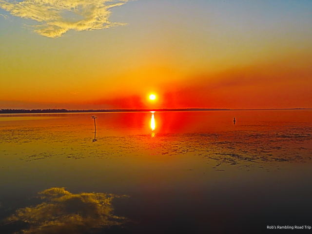 In another sign that fall is approaching I noticed that sunset is getting earlier. The time of sunset between Sunday and today has changed by five minutes. I am paying attention so I can walk up the hill to see the sunset over Lake Seminole. Tonight’s sunset was brighter, but less interesting than last nights.
