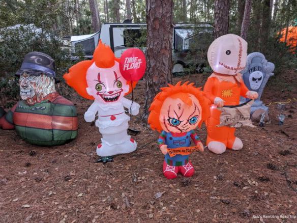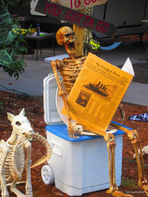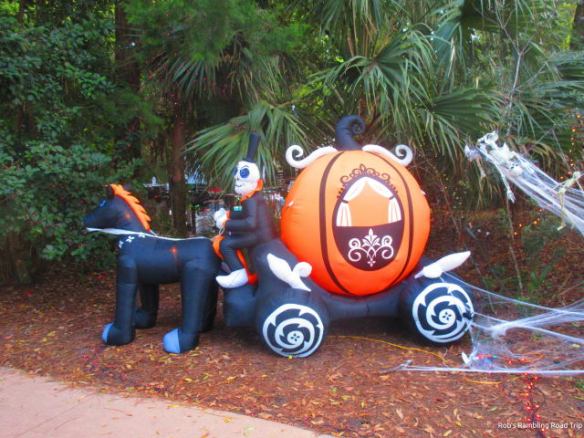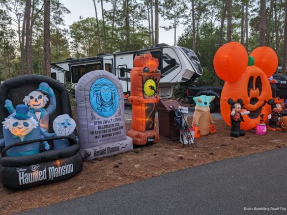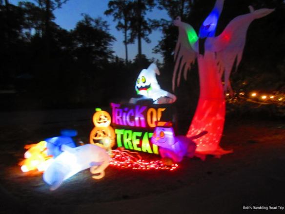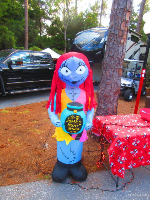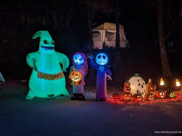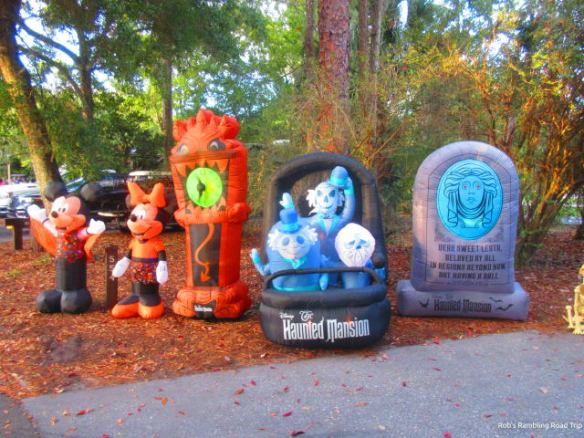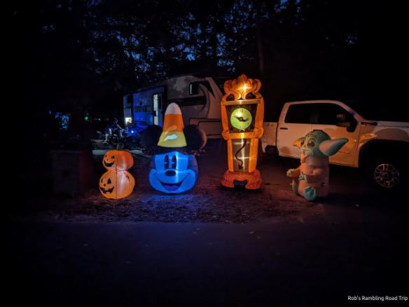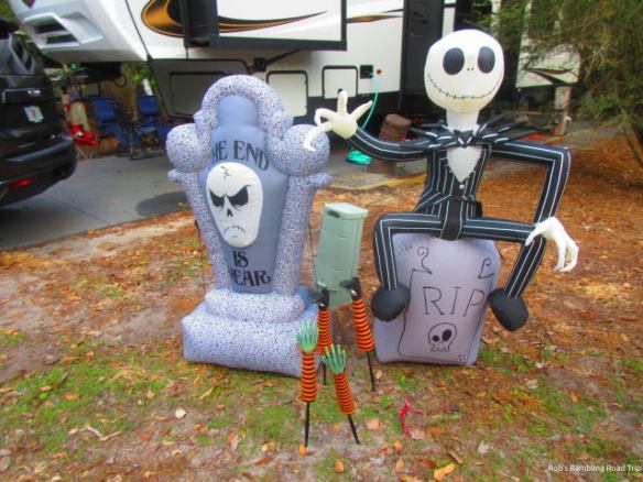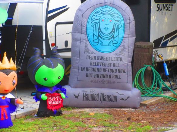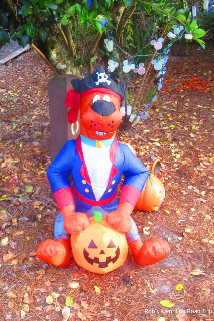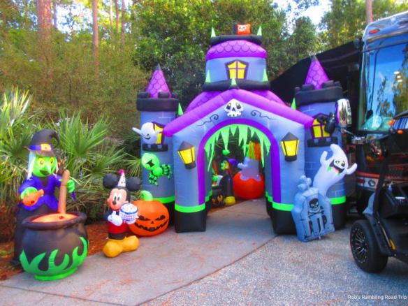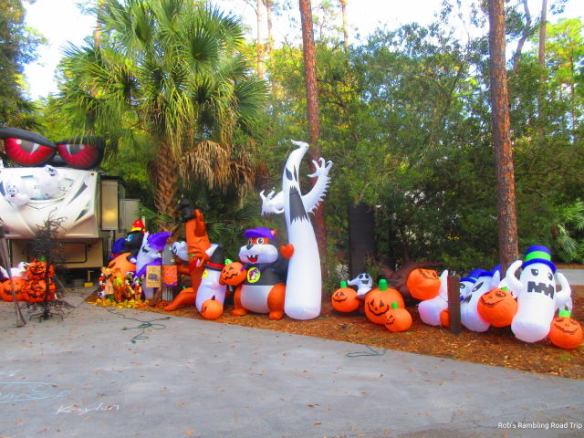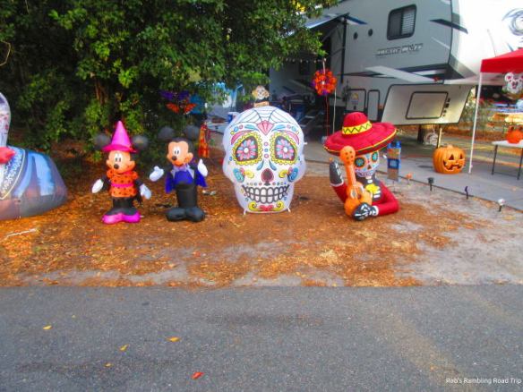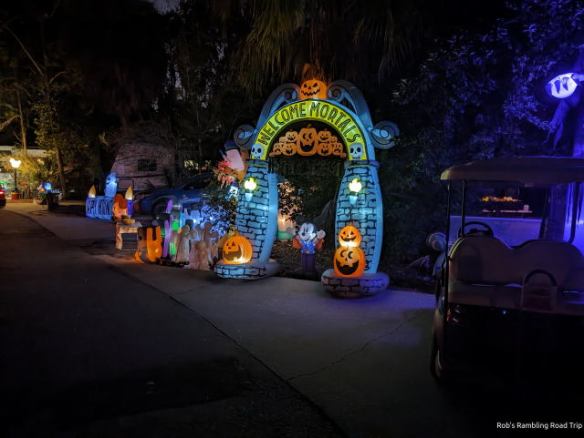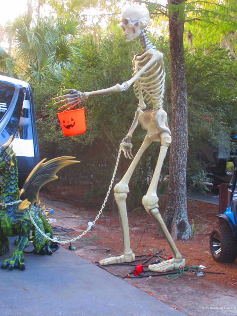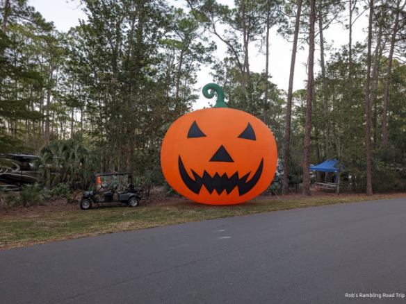 Happy Halloween! Today was a nice warm and comfortable day. The high temperature was in the mid eighties. It was nothing like the Halloweens of my youth in the Northeast. My memories of Halloween are associated with cold temperatures and wet weather. It was also darker in the evening because the time change back to standard time was in the middle of October rather than the first weekend in November. There isn’t anything going on here for Halloween. A few people have decorated, but haven’t heard about any parties or golf cart parades. This is a fifty five plus park, so there aren’t any kids to go door to door.