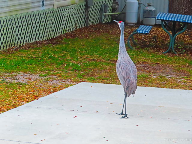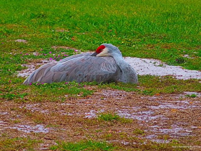 The birds that live in and around the park were also acting different today. Most of the ducks were missing. They were probably back in the woods on the far side of the pond. Some of the sandhill cranes were not up and wandering around. For the first time I say two of the cranes sitting on the ground with their legs pulled up under their bodies and their heads back along their backs. It seemed to be an attempt to rest without having to resist the strong wind.
