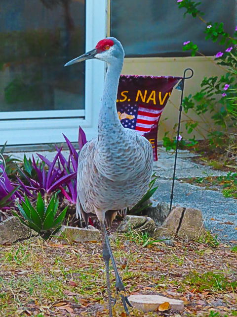 The sun was starting to set as I neared home this afternoon. The early sunset is another part of the return to standard time that I will take a few days to get used to. I was greeted at my site by one of the resident pairs of Sandhill cranes. They reluctantly moved so I could park, but hung out just across the street and watched me get out of my car. I turned on my camera and took a few pictures of them for which they seemed to willingly pose.