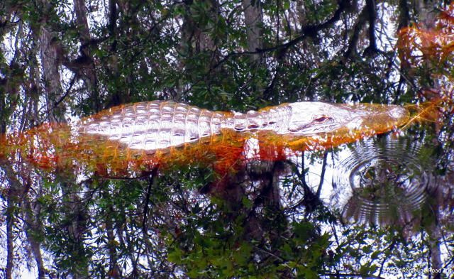 In the big swampy area that surrounds the creek that separated Polk County from Lake County I had a few water based wildlife sightings. There were a couple of turtles on a downed tree and one good sized alligator in the water. The lighting really work against me taking a picture of the gator. For some reason the picture thinks the alligator is brown. The water was muddy, but the gator was the usual gray color.