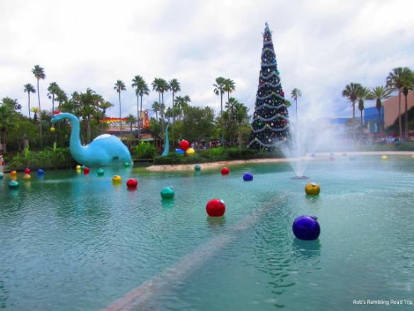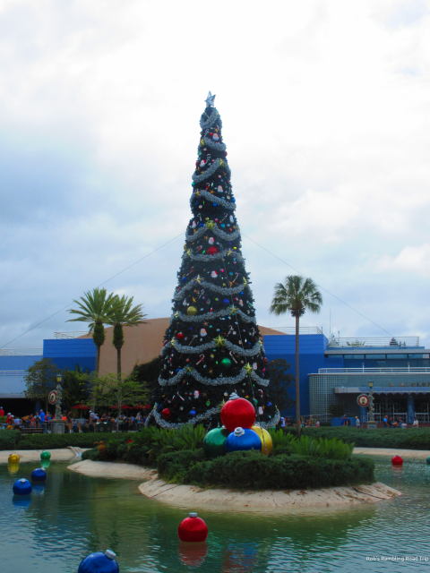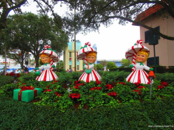 It was just before noon when I arrived at the theme park. The weather looked a little brighter than earlier in the day. The crowds looked heavy and the wait times for rides were long. My first impression of the Christmas decorations was favorable. They looked very pretty in the daylight and probably looked even better after dark.