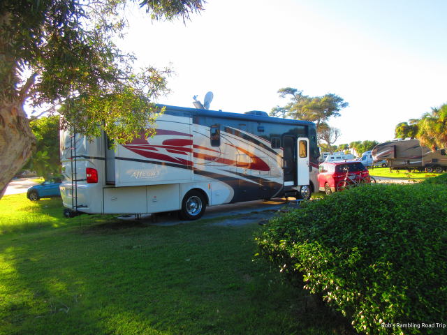 This was a travel day. My stay at Kissimmee South RV Resort was over. My two week reservation at Jetty Park at the entrance to Port Canaveral began today. I had plenty of time to get packed this morning. The official end of my stay is Monday. I booked a month to get a better rate and it ends on the twentieth. It worked out since the official checkout time is 11AM and the 2PM check in at Jetty park is strictly enforced. I departed shortly after 1PM for my seventy mile drive.