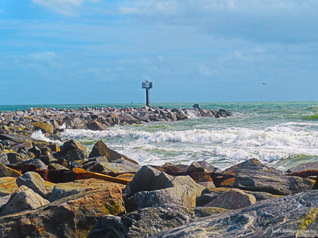 For a sunny day, the ocean was not so peaceful. The wave height coming into the port was higher than I remember seeing it. Out at the opening to the ocean the waves were breaking over the protecting jetty. If it was a stormy day I wouldn’t be so surprised to see those conditions, but it just didn’t match the nice sunny day.