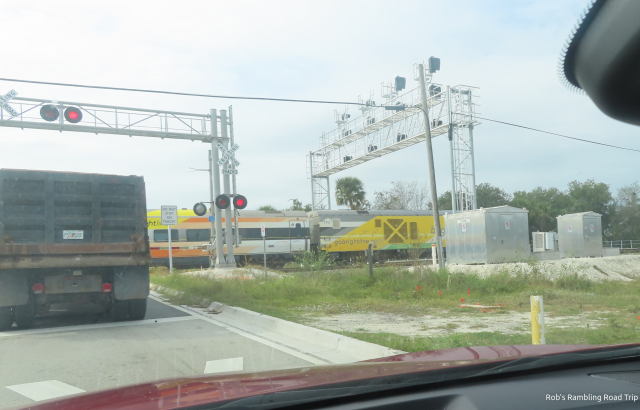 While I was driving around today I had to stop at a railroad crossing. The gates were down to allow the new high speed train from Miami to the Orlando Airport to pass by. The Bright Line train service was extended this fall from a commuter service between Miami and just north of Palm Beach to one that goes all the way to the Orlando Airport. The route takes the train north along the Atlantic Coast to Cocoa then west to the Orlando Airport. Work is underway to get approval to continue west from the airport into the Orlando Resort area then on to Tampa, but that is likely many years out.