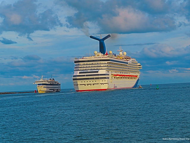 There were two cruise ships in port today. Even one is enough to attract lots of cars filled with people in the afternoon to watch the ships set out to see. There is even one woman who live streams the departures on YouTube, TikTok or some social media platform. I’m not sure which. She has been there every day I have watched the ships depart. Today both ships departed in quick succession. Small craft traffic was light allowing them a to depart without any drama. The sheriffs boat didn’t have to chase any boats out of the way.