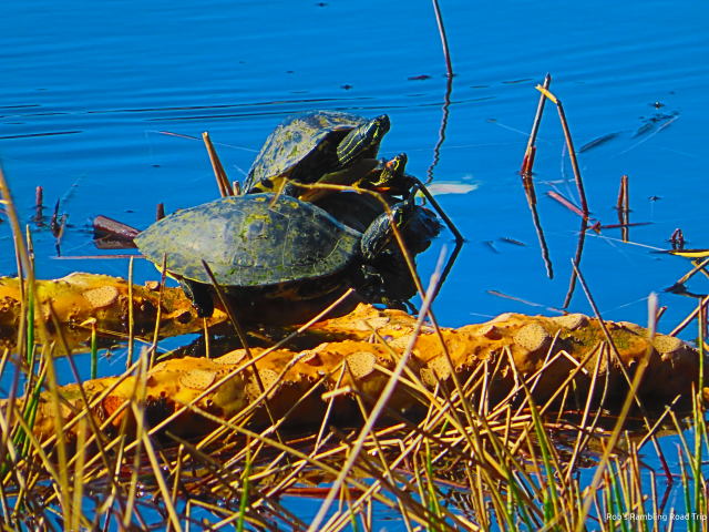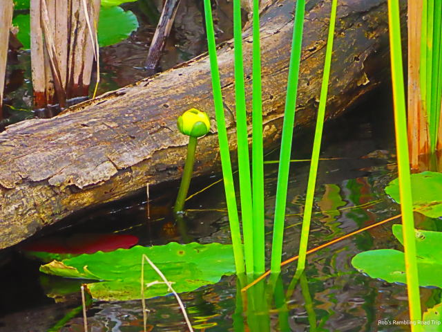 There seems to always be a few birds and other wildlife around to provide a distraction while walking the trails around the various fields and ponds. Today was no exception in addition to a good complement of birds there were many turtles taking the sun on logs and stumps in the ponds. There aren’t many wildflowers in bloom, but I did managed to get a picture of one interesting blossom at the edge of a pond.