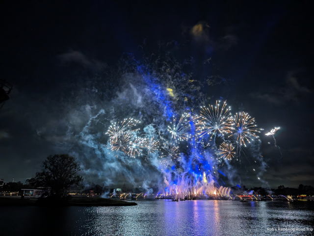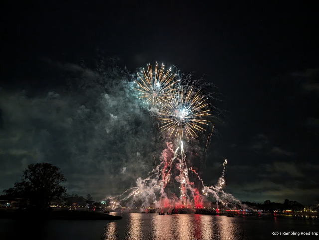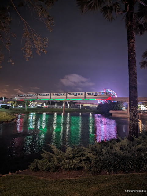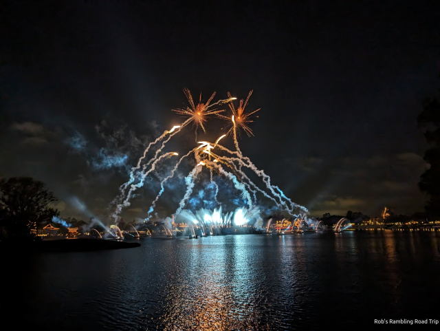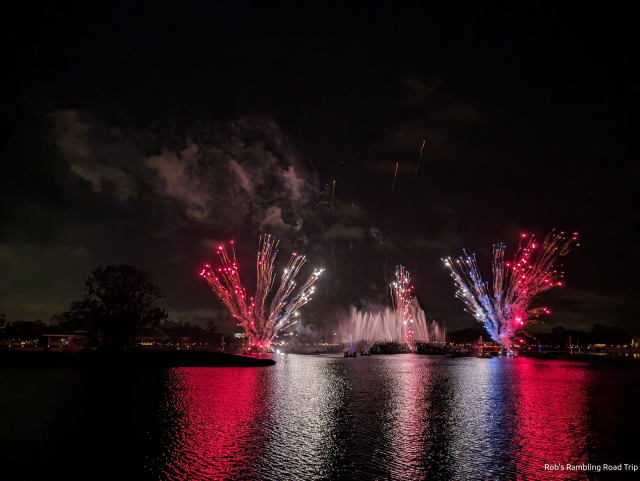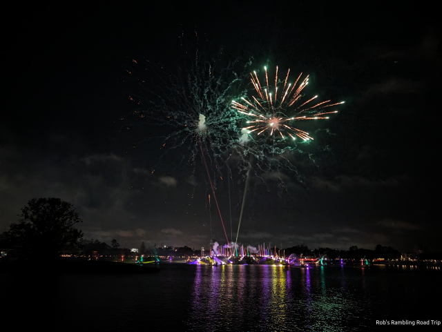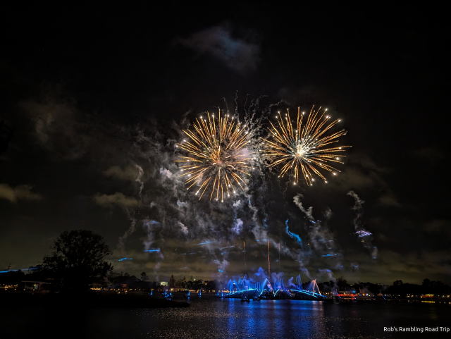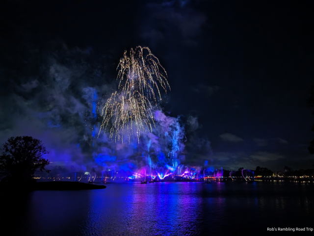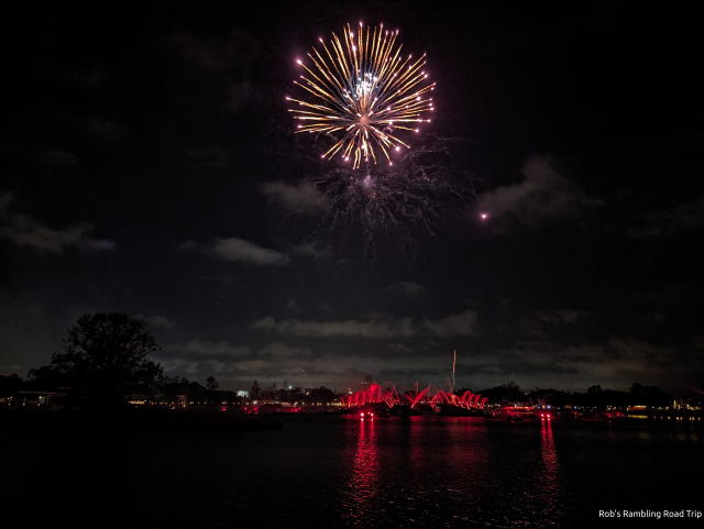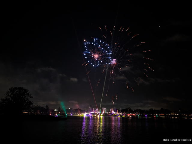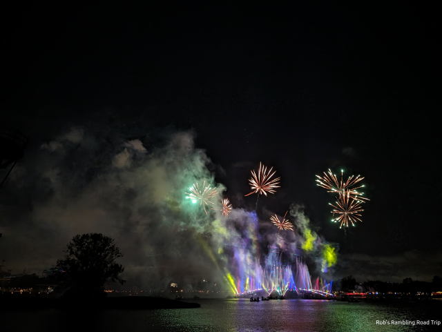 After completing the circuit of resorts I returned to EPCOT and rode a couple of rides and walked around the resort until the 9:30 night time fireworks show Luminous. I had a much better view of the show from in front of the Norway pavilion than I had last week in Canada. It is a very good show. Tonight the wind was strong enough that the fireworks effects dissipated quickly. You needed to watch closely. I took way too many pictures with my cell phone. I didn’t bring any dedicated camera tonight.