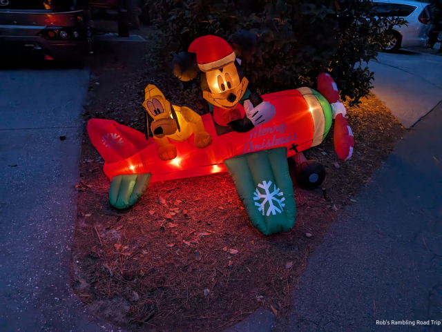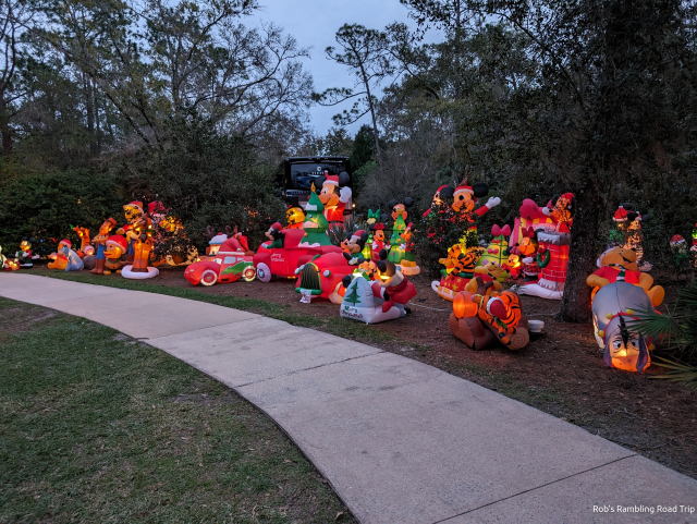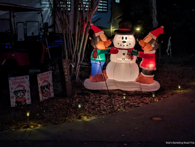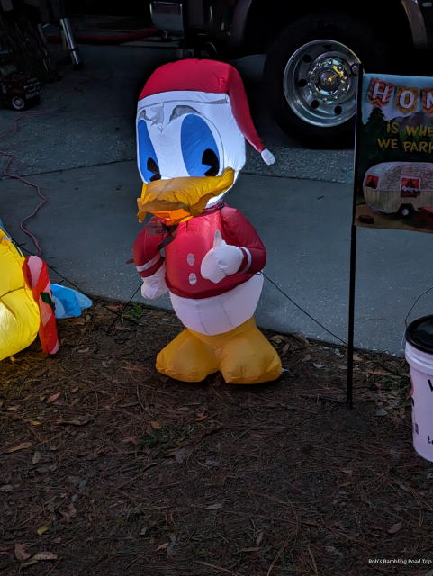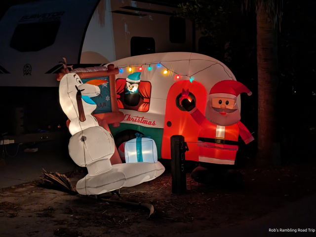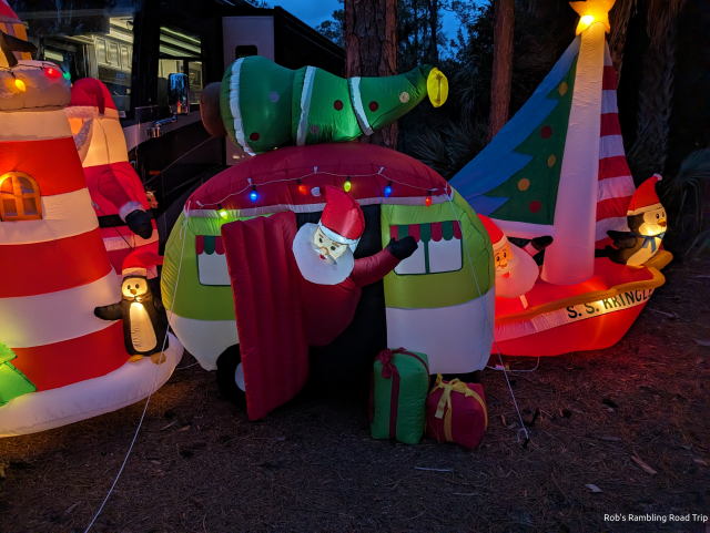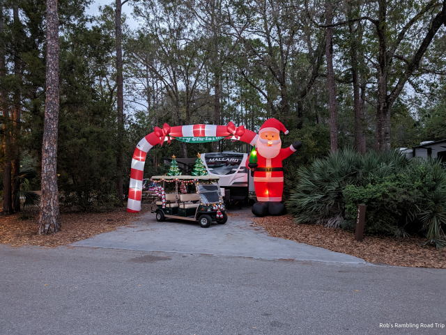 A little rain occurred while I was on the boat to Fort Wilderness. It was cloudy and threatening all day, but for the most part today was just a wind event. It was dry again when I arrived at the campground and began my walk around the loops near the settlement. Since it is still ten days to Christmas a lot of sites are not decorated yet. Also, I think there were more empty sites in Fort Wilderness than I’ve ever seen before. The horrible weekend weather forecast may be at fault. Spending more than $200 dollars a night to be subject to more than 2 inches of rain Saturday night into Sunday may be the breaking point for some.