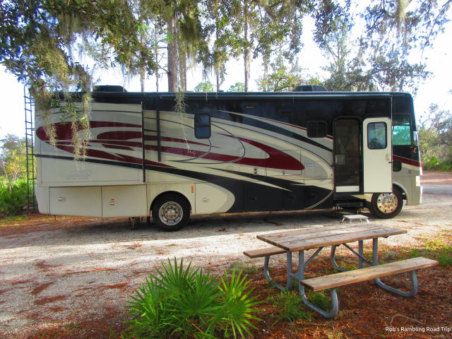 Since I wore a raincoat on for my shopping run, I was only half soaked when I got back to my RV home. The groceries actually seemed a little wetter than I was. The rest of the day was spent inside keeping dry and getting the inside of the RV ready for travel. Tomorrow is a travel day to the Bradenton FL area. Hopefully, the weather will cooperate. The rain is supposed to end in the morning and I have until 1PM to checkout.