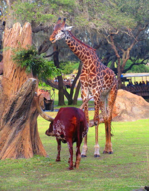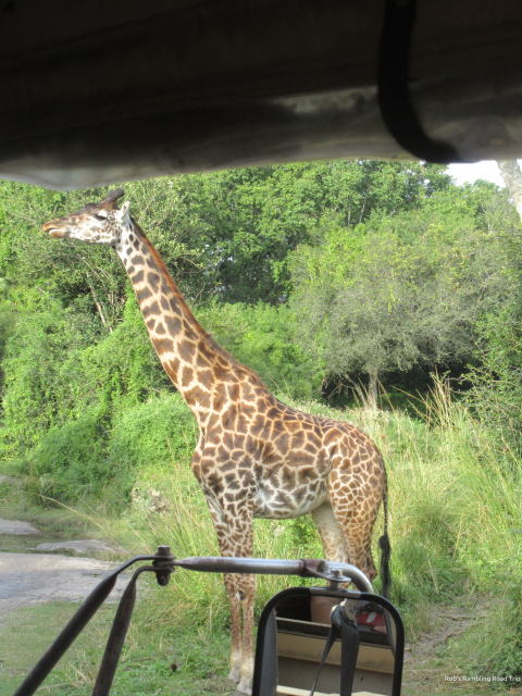 The birds and other critters along the entrance path and around the Tree of Life were entertaining as I slowly made my way to the back of the park. The Kilimanjaro Safari was scheduled to close at 4:45 and it only had short wait time. There were plenty of animals to see, but some were waiting to go to their backstage homes. In particular, the giraffes and zebras were clustered up near the paths to their barns. The hyenas, wart hogs, and elephants to name a few were already backstage. Still it was a very nice safari.