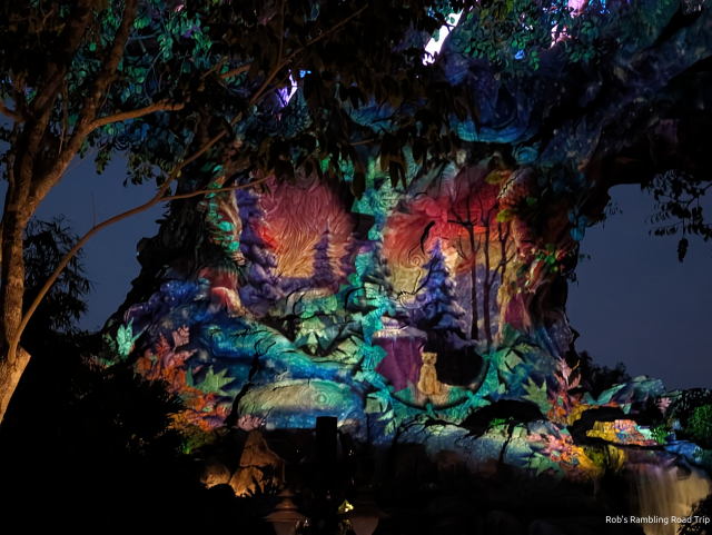 My mission for the day was a visit to Disney’s Animal Kingdom in the late afternoon and evening. I have not seen the park after dark in several years. In addition to the normal lighting in areas like Pandora, there were Christmas lights and a projection show on the Tree of Life to see. Most of the animals are put to bed or otherwise hidden back stage by nightfall, so I got there early enough to see a few animals before nightfall.