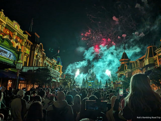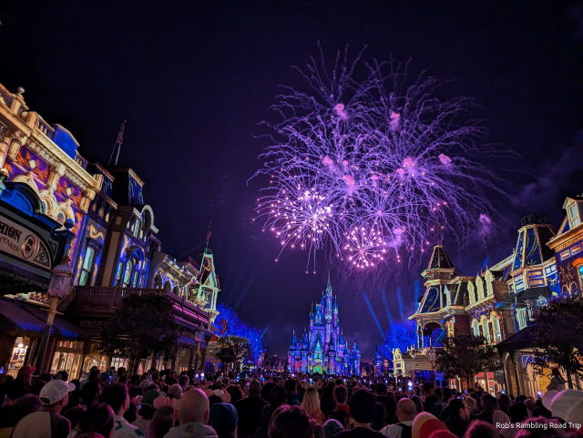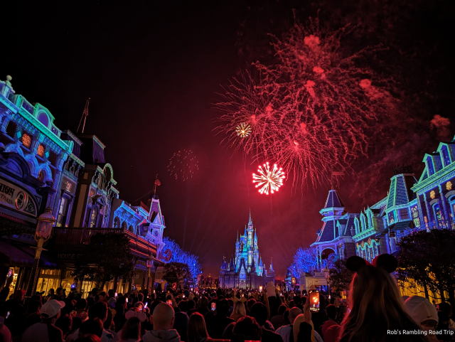 The crowd on Main Street for the fireworks wasn’t the worst I’ve seen, but I rapidly remembered why I don’t like it as a viewing area. It has the best view, but people are shoulder to shoulder. There is now such thing as personal space. Tonight I had an elementary school age kid beside me that just couldn’t stand still. Most of the time he was running around his mother as fast as he could. She didn’t seem to care. My feet got stepped on more than once.