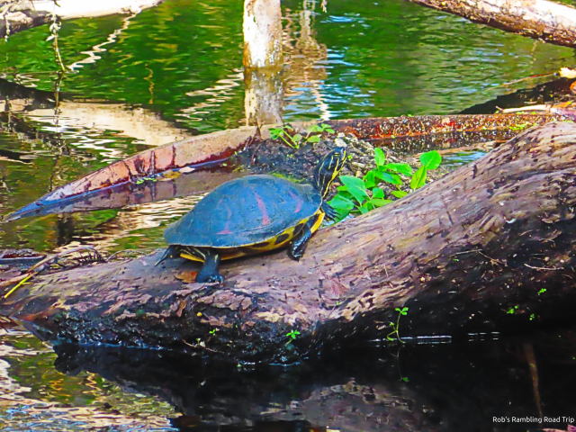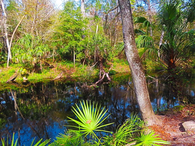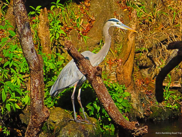 Today I walked the trail along the river closer to the entry of the state park. I drove to the parking lot for the “rapids” and walked the trail from there. I saw more wildlife today. There were lots of turtles on logs and I even saw one small alligator on the far bank. Several verities of water birds were along this stretch of river and one interesting surprise. A Red Shoulder Hawk flew into a tree over the river and watched the world go by for a few minute while I took its picture.