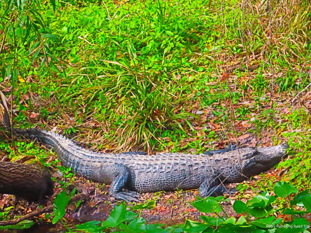 Once back in the park with my groceries stored away, I went for my daily walk along the river. There was a lot of standing water to dodge walking through the campground. Once I was on the trails it was a little easier walking. The warm day encouraged at least one alligator to enjoy some time out of the water on the river bank. There also weren’t as many people on the trail. This made the hike a little less challenging.
