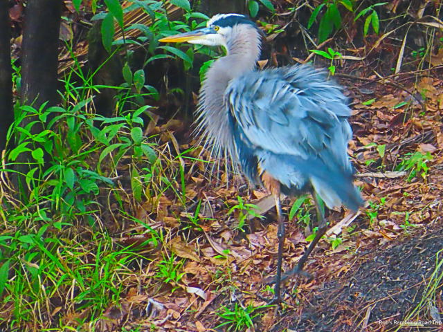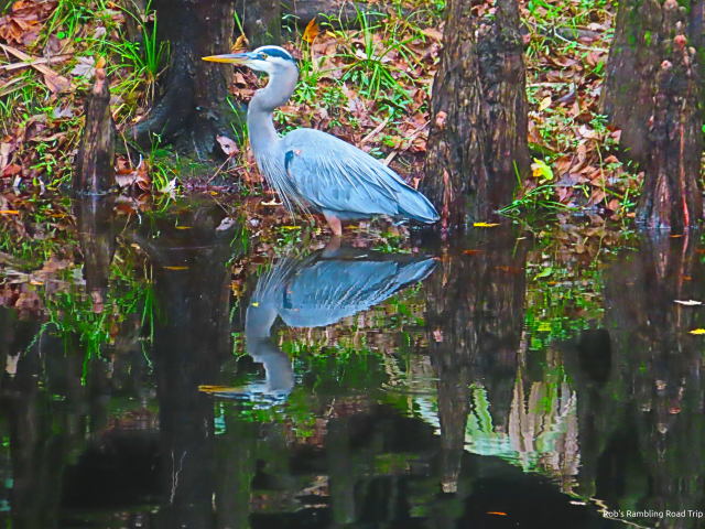 On my hike I saw my favorite Great Blue Heron. It was in one place on my outbound leg and in a little different place on my return trip. Once again I took advantage of how photogenic the bird appears to me. I took several pictures of the bird and its reflection in the calm river water.