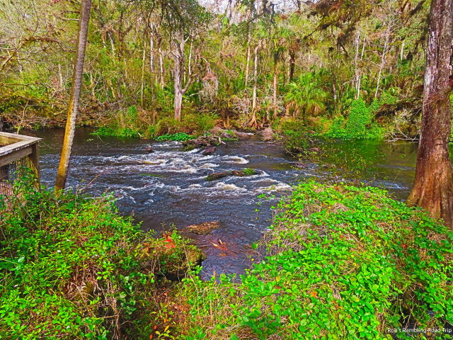 It was fifteen to twenty degrees cooler today than yesterday. The high temperature today was in the low sixties. A little bit of rain and a lot of wind came with the passing of the cold front last night. The rain over the last few days has increased the flow in the Hillsborough River quite a bit. The water passing over the rocks up river from the campground in the state park really looks like rapids today. It is living up to its name.