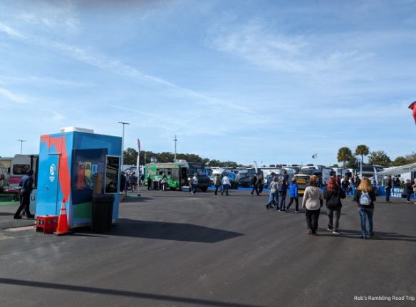 The temperature was around fifty this morning and I couldn’t hibernate in a warm bed. I had to drive to the outskirts of Tampa for the first day of the Florida RV Super Show. I wanted to get there before the crowds built, so I was aiming for as close to the 9AM opening as I could manage. I left the campground before 8AM and got to the Florida State Fair grounds sometime between 9 and 9:30. Traffic was very heavy on Interstate 4 and then there was a backup getting into the fair grounds parking area.