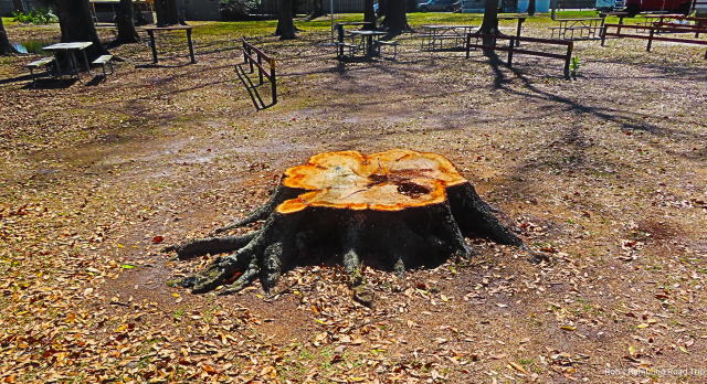 This stump is about 5 feet in diameter. It must have been interesting when they took it down.