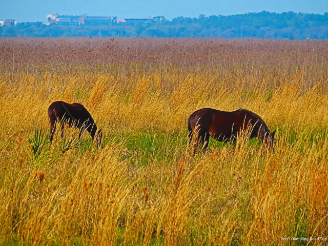 My mission today was to walk the Cones Dike trail out on to Paynes Prairie. Shortly after the noon hour I drove deeper into the park to the visitors center. The crowds were down today. I had a few minutes on the observation tower to my self. The horses were in a new location. My luck was strong. They were a close to the trail I was going to walk.