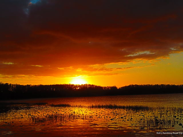 This afternoons sunset transitioning from day to night was very reflective. The wind died down and the surface of the lake was glassy smooth. The sun and clouds both reflected off the surface very well. It produced a different kind of sunset.