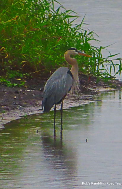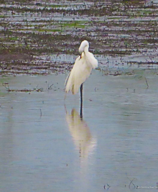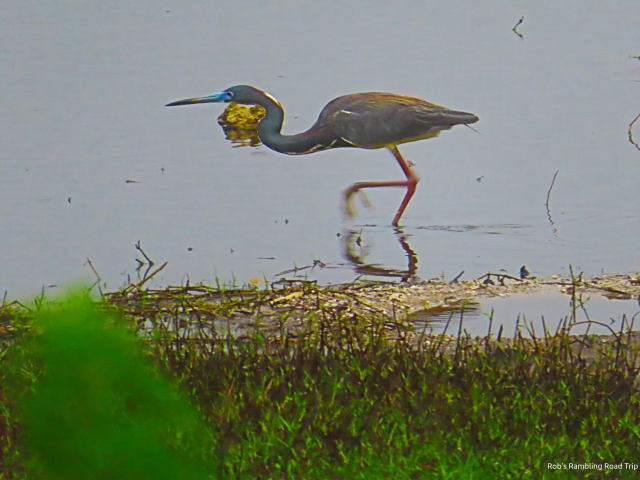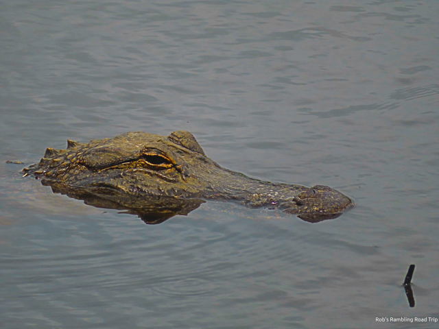 The weather cut down on my exercise today. I got in one short walk early, but the rain was still coming down when as sunset approached. To check on the alligators and birds, I drove to the bridge over the river on the park road. I got a little wet taking pictures of the birds. The alligators were still playing shy.
