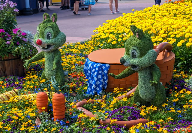 With my primary mission complete, I wandered around the front part of EPCOT enjoying the topiaries and gardens again. The park was very busy. After about an hour I returned via monorail to the TTC and transferred to the express monorail to the Magic Kingdom. I was in time to watch the flag retreat ceremony in town square. They lower the flag with class and honor a veteran at the same time.