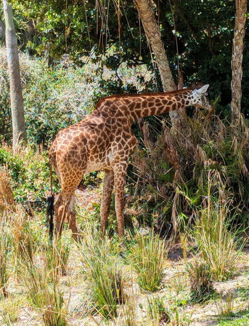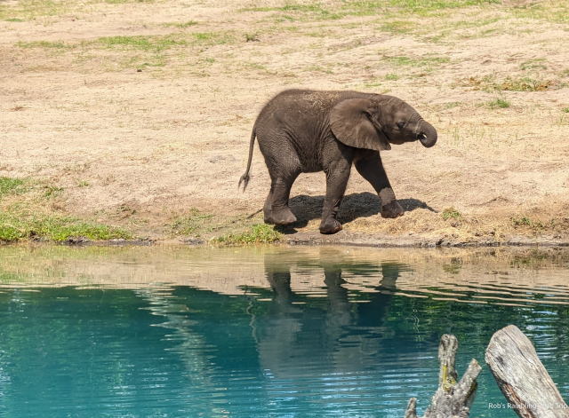 Since the Animal Kingdom was scheduled to close at 6PM, a late afternoon visit wasn’t in the cards. I arrived at the park around 2PM. It wasn’t very busy. The wait for the Kilimanjaro Safari was listed at 5 minutes, but was essentially a walk on. They were only loading from on of the two truck loading platforms. Many of the animals were as expected sleeping in the shade. Others were probably back stage in their air conditioned enclosures. Still, plenty of animals were available to entertain including the baby elephant.