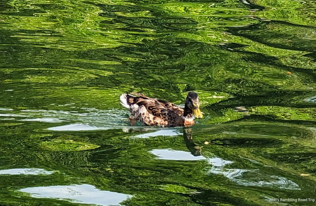Duck swimming in the Rivers of America. The green color is mostly caused by the reflection from the nearby trees.