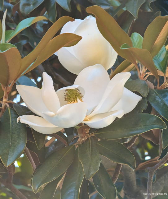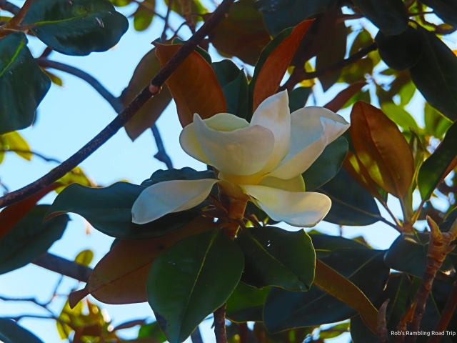 Once again my day was not very blog entry worthy. I attempted to do a few errands that involved wandering in and out of some stores. Back at my RV home I took my usual walk around the RV resort. The only surprise was a tree I hadn’t paid any attention to turned out to be a Magnolia that is now in bloom. I had a little success getting a picture or two of the blossoms.