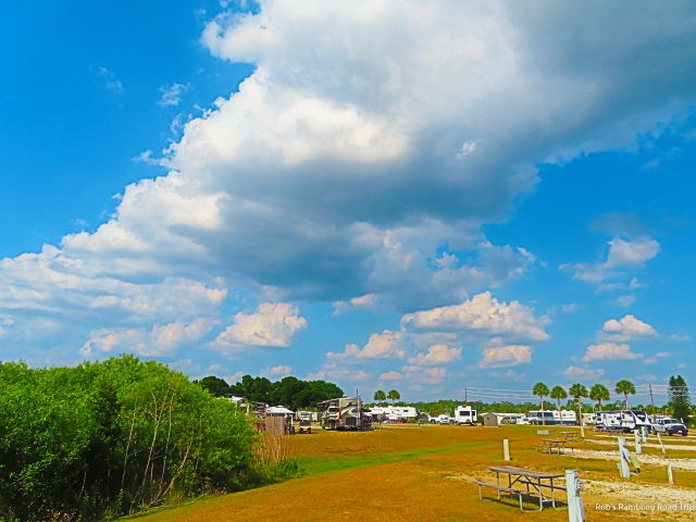 The grass in the RV park is turning brown. This past weeks visit from the lawn mowing crew turned into a couple of guys wandering around with string trimmers. I don’t think the mowers were even unloaded from their trailer. Another sign of the drought in the local area is at Disney World. They have suspended water transportation in the Disney Springs area of the park. I am kind of surprised because most of the bodies of water I’ve seen appear to be at a normal level.