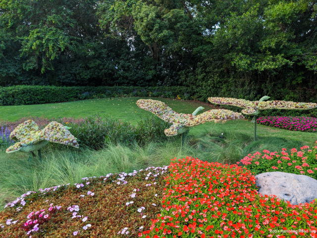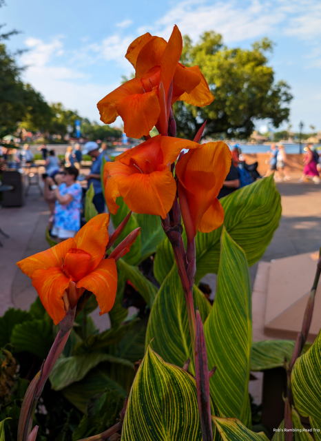 I was off to Disney’s EPCOT late this afternoon for a meal and some entertainment. The parking lot didn’t appear to be particularly full, but the crowds inside seemed to be heavy. Wait times for attractions were also long. I wandered around checking on the flowers, butterflies, topiaries, the entertainment and generally people watching. For dinner, I had a BBQ Brisket sandwich with french fries and onion rings at the Regal Eagle restaurant in the American Pavilion. The sandwich and fries were great, but the onion rings not so much.
