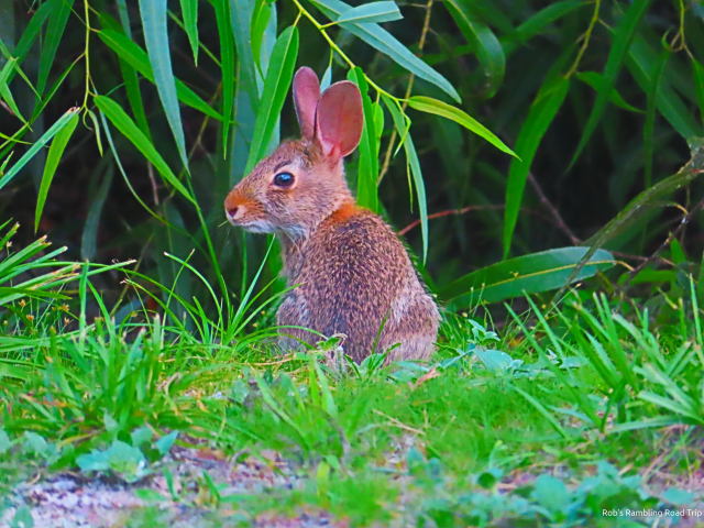 I pushed my self into one walk around the RV resort later in the day. The clouds were blocking the clouds at the time, so it was a little more comfortable outside. Even so, I didn’t take as long a walk as I usually do. I found myself dragging just visiting with the rabbits. They seem to see me and run away long before I spotted them.