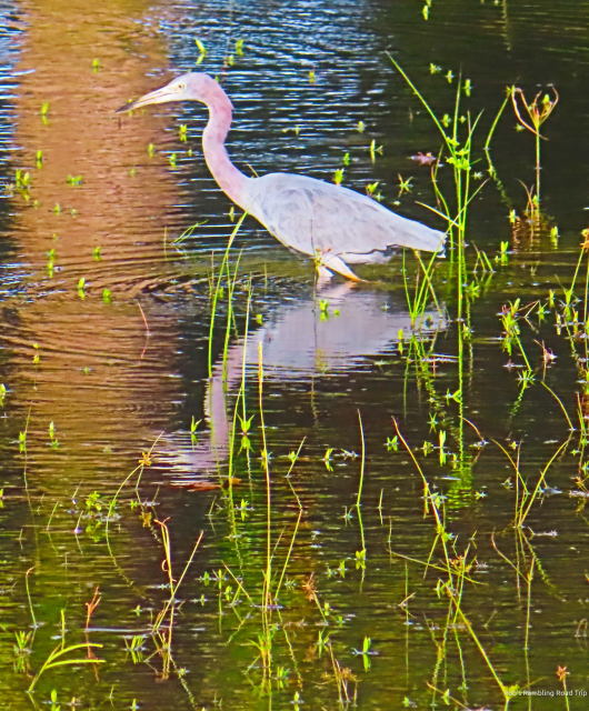 This afternoon’s rain was heavy and long. The retention ponds at the RV resort have more water tonight. Only a couple of birds had returned. The others were probably still taking refuge from the rain.