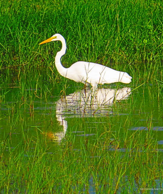 Yesterday’s rain also added enough water to the retention ponds that the water birds are back. The egrets and herons are busy plucking morsels of food out of the flooded grass area. I got a couple of nice pictures of the birds from distance on my walk this evening. The birds are easily spooked. It is hard to get very close to them.