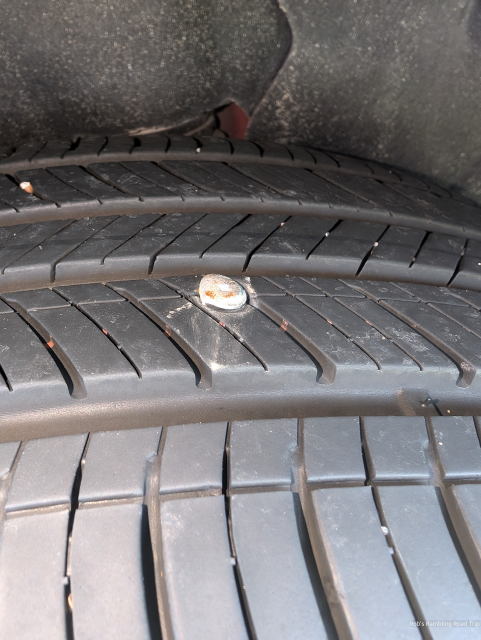 It was a slow leak, so I got home OK. After sitting in the car until the rain let up a little I made it inside my RV home. Once the rain ended I checked the tire and found the head of a screw, nail or something on the surface of the tire. Tomorrow morning I did out the compressor and fill the tire with air. There are a couple of tire sales places less than two miles away. Hopefully, they can put a plug in it. I really don’t want to buy a new tire. This one only has 10,000 miles on it.