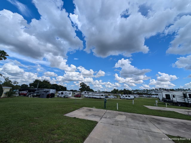 It was another cloudy and humid day. The only real difference from the last couple of days was an early afternoon rain storm that managed to find my RV home. The storm occurred while I was out running errands, but the wet conditions and puddles gave evidence to the event. The temperature hovered around the ninety degree mark, but the humidity made it feel much warmer.