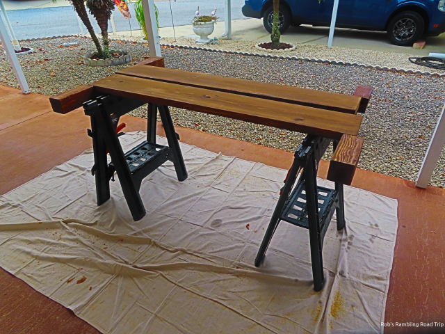 Most of the last few days have been focused on finishing my queen bed project. The bed frame is complete and I will try it out tonight. It has taken much more time than I anticipated and probably should have taken longer. A slower pace would have allowed me to do a better job sanding and been a little more precise with my cuts. The poor sanding shows through the finish in some areas and a couple of the corner joints aren’t as nice as I’d like. It is still a good outcome considering the years it has been since I did something similar.