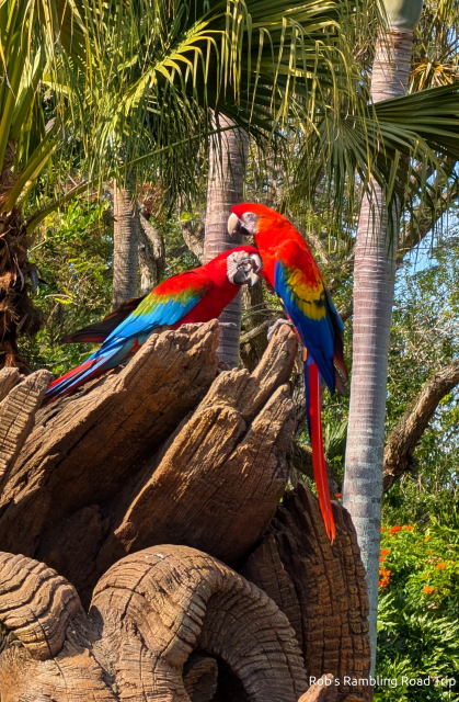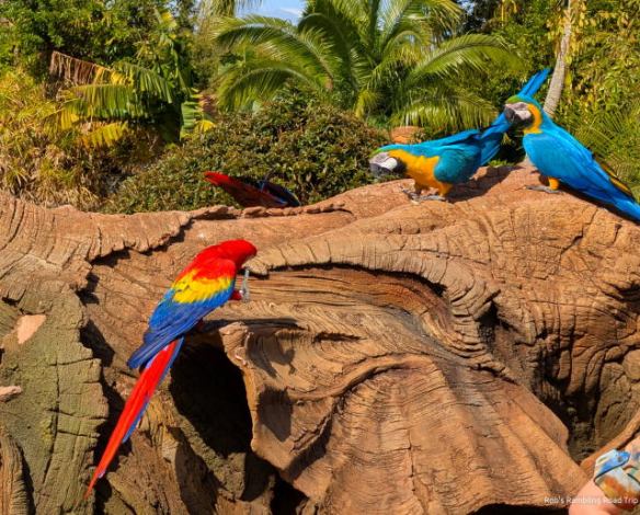 On Monday afternoon I made a visit to Disney’s Animal Kingdom. I arrived just in time to see the Macaws entertaining in front of the tree of life. Periodically during the day there is a show featuring a flock of the Animal Kingdom’s resident parrots. They are free flying from elsewhere in the park and arrive in dramatic fashion. After they do a little preening for the audience and get feed they fly back to their hidden roost. It is a fun little show.
