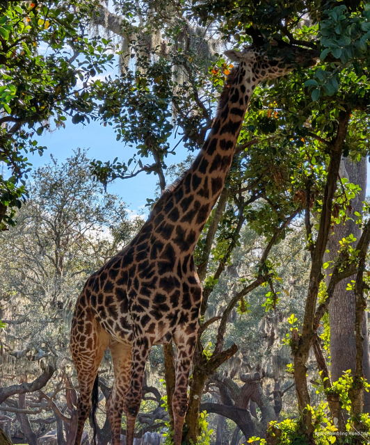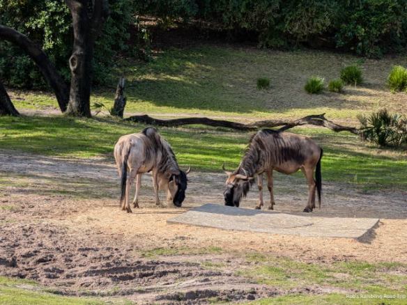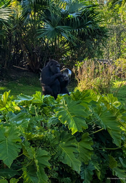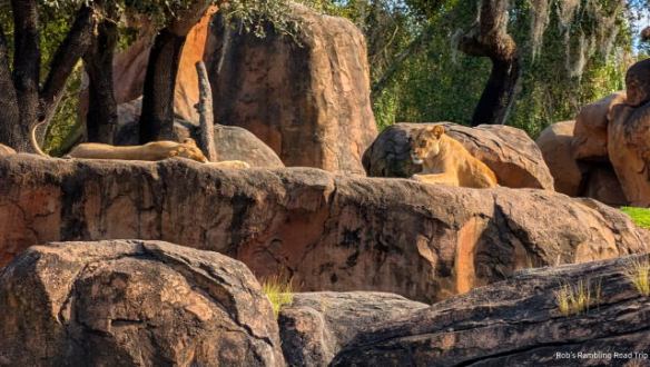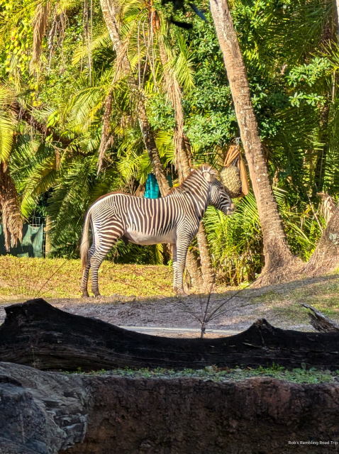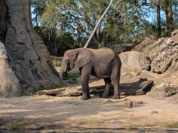 From there I made my way to the Kilimanjaro Safari to see the selection of African animals. The wait was a short thirty minutes for the truck ride out into the savanna. The animals were active during the afternoon. The zebras, giraffes, wildebeests, white rhinos, lions and elephants were all out to be seen. The baby elephant born about a year ago was out eating and playing with her aunts. The safari truck stopped in that area for several minutes while we waited for the white rhinos around the corner of the road to move so the trucks could continue along. It was a great place to sit and watch the elephants.