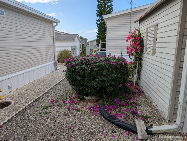 I parked at the Transportation and Ticket Center and made my way via monorail to the Magic Kingdom and then via boat to Fort Wilderness. It was still daylight when I arrived. Being able to walk around during daylight turned out to be a good thing. Sunday and Monday’s rain storms had left parts of the campground flooded. The roads were all high and dry, but some campsites were closed with pump hose lines crossing them and water filled puddles lined many of the campground loop roads. After dark trying to stay out of the golf carts way as I walked around the loops became an exercise in not falling off the edge of the road into the mud.