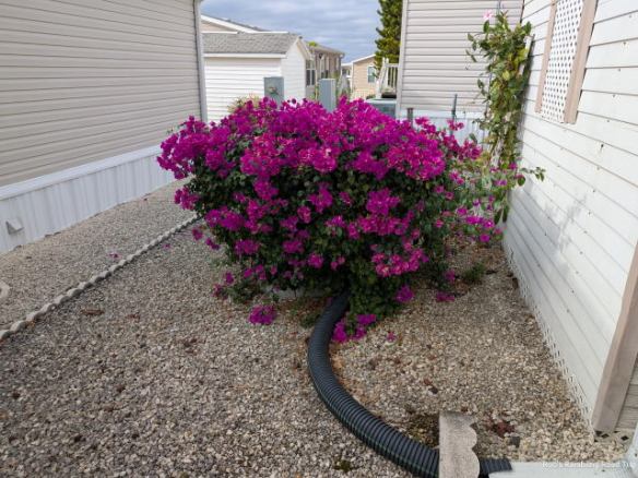 The weekend has been relaxing. I accomplished a few chores, but others have been deferred. My bougainvillea plant is back in a rapid growth phase. It hasn’t needed attention for over a month, but it needs a “hair” cut again. It looks good from a distance. Up close it looks shaggy. Trimming it is easy. Picking up the clippings and taking them to the park’s dumpsters is another matter.