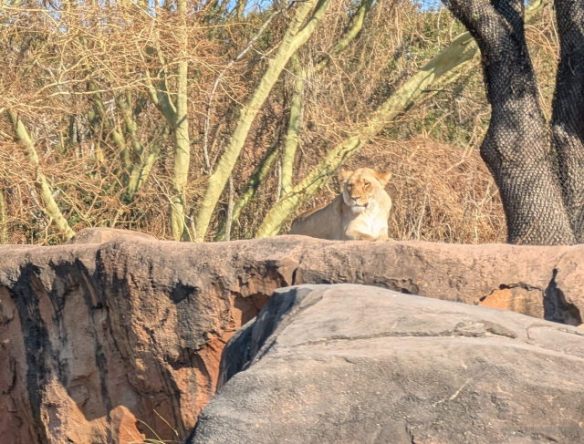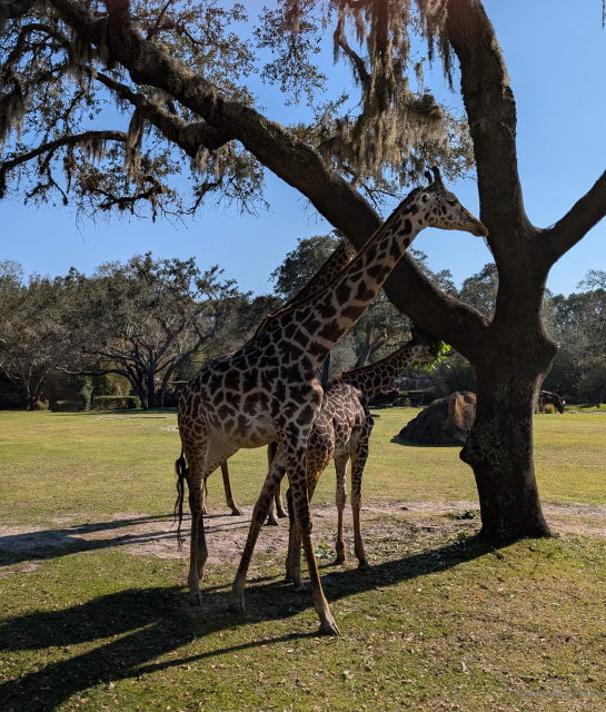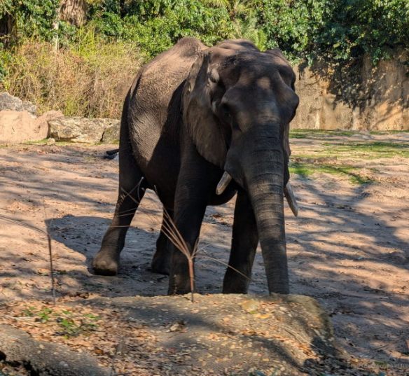 Animal Kingdom was busy Wednesday, but people departed as the afternoon progressed. There were plenty of animals visible, just not very active. On the safari many animals were sitting in the sun well back from the road. The few that were moving seemed to have blocking the road in mind. A couple of Giraffes, an Ostrich and a pair of White Rhinos all slowed down our safari truck. That is actually a good thing. It gives you a chance to take better pictures unless you get stuck in the middle of nowhere.